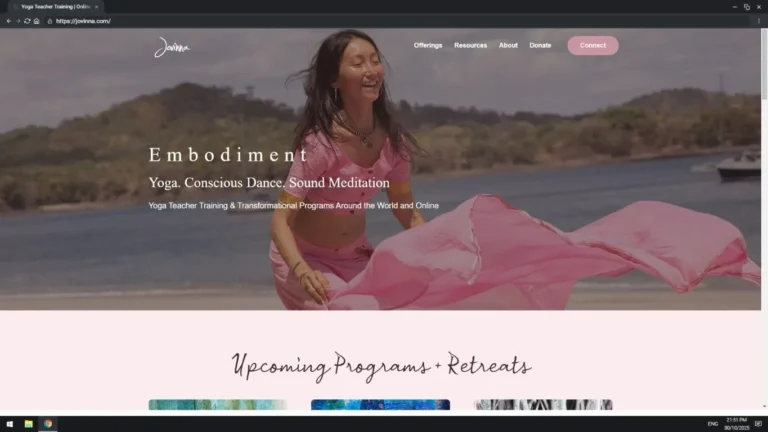 Jovinna Chan is a global yoga, conscious dance, and meditation teacher who offers transformational programs, teacher-trainings, retreats and one-on-one mentorship. Her website showcases her multi-faceted...